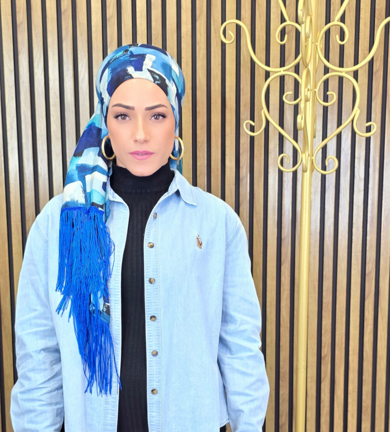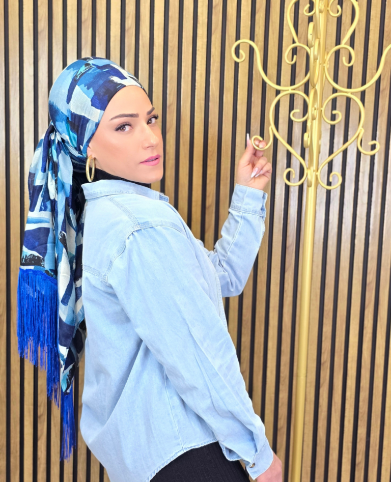 מטפחת צעיף מבד נוח, נעים וקליל לקשירה. בגוונים שמתמזגים זה בזה בצורה מופלאה. בקצה אחד פרנזים ארוכים מבריקים ומיוחדים מאוד המדגישים את סיומת המטפחת ומעניקים לה שיק וסטייל.