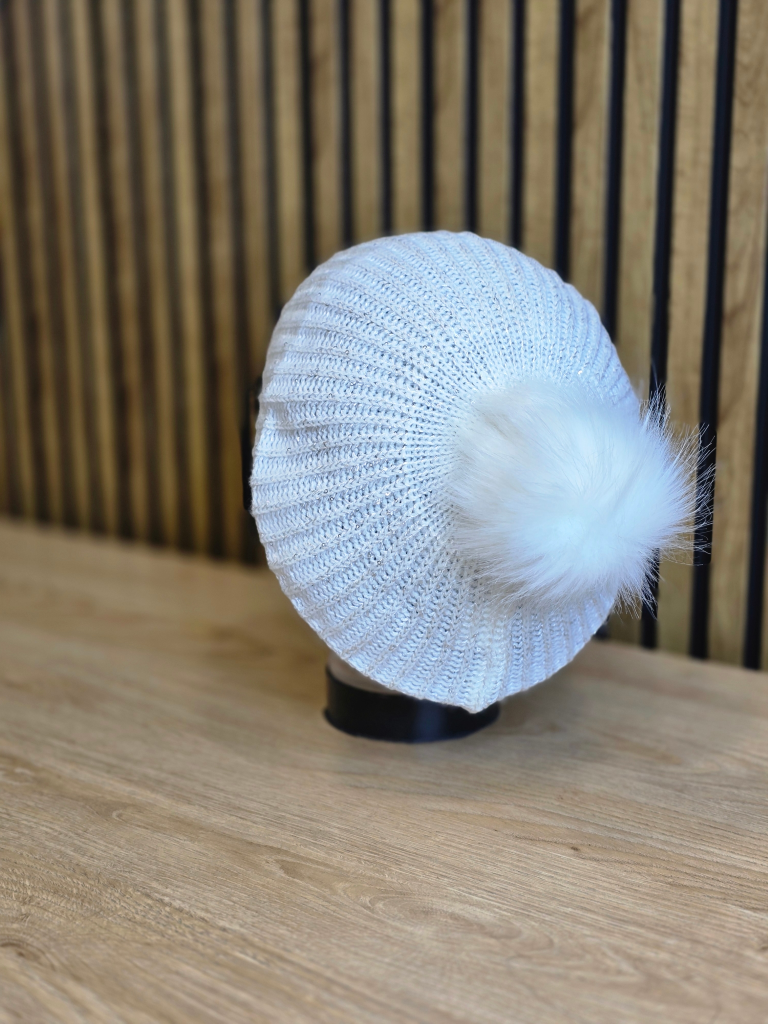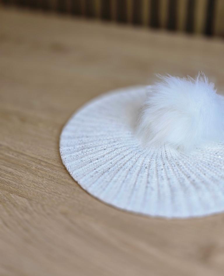 ברט צמר פונפון-לבן