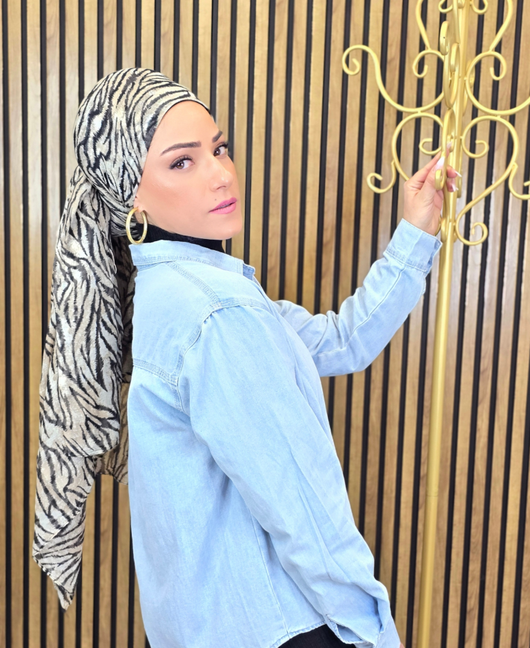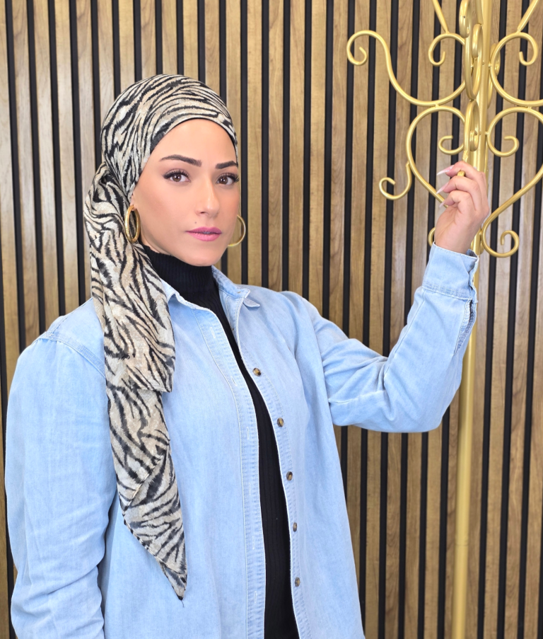 טייגר ⇐ צעיף מבד כותנה, לא מחליקה, נעימה מאוד למגע ונקשרת על הראש בקלות ובנוחות. בטקסטורה של מנומר.