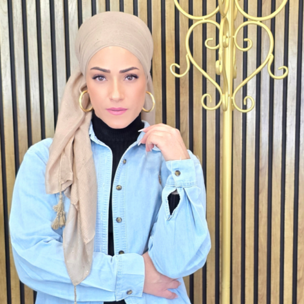 פשתן⇐ מטפחת צעיף מבד כותנה, לא מחליקה, נעימה מאוד למגע ונקשרת על הראש בקלות ובנוחות. על גבי הבד פייטים קטנים ומבריקים. בקצוות המטפחת גדילים לקישוט ועיטור.